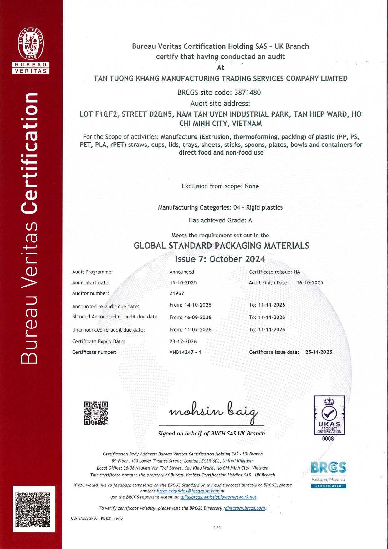CHUNG NHAN BRC VERSION 7 - TAN TUONG KHANG (LOAI A)